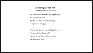 Lära känna Nils Ferlin. Läsa och analysera ”Du har tappat ditt ord”. Bryta upp texten och bygga om.