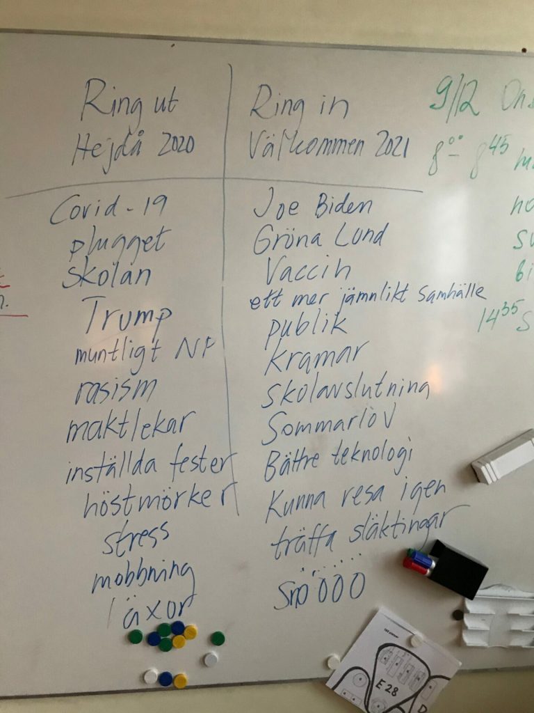 - Välj ut ett stycke ur ”Nyårsklockan” och skriv en egen Ring in och Ring ut text.