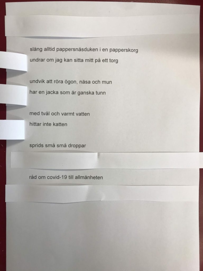 - Klipp Sönder din dikt i enstaka ord eller meningar.