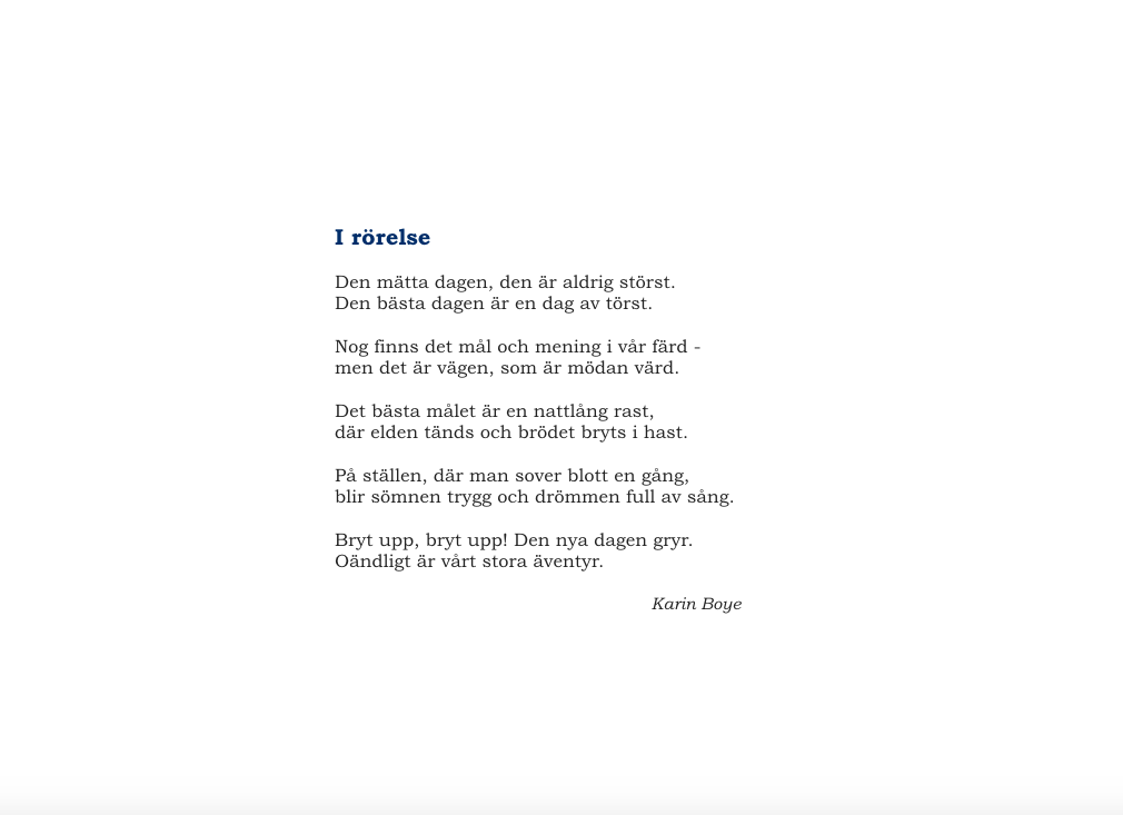 Lära känna Karin Boye. Läsa och analysera ”I rörelse”. Fortsätt med PandemiPoesi.