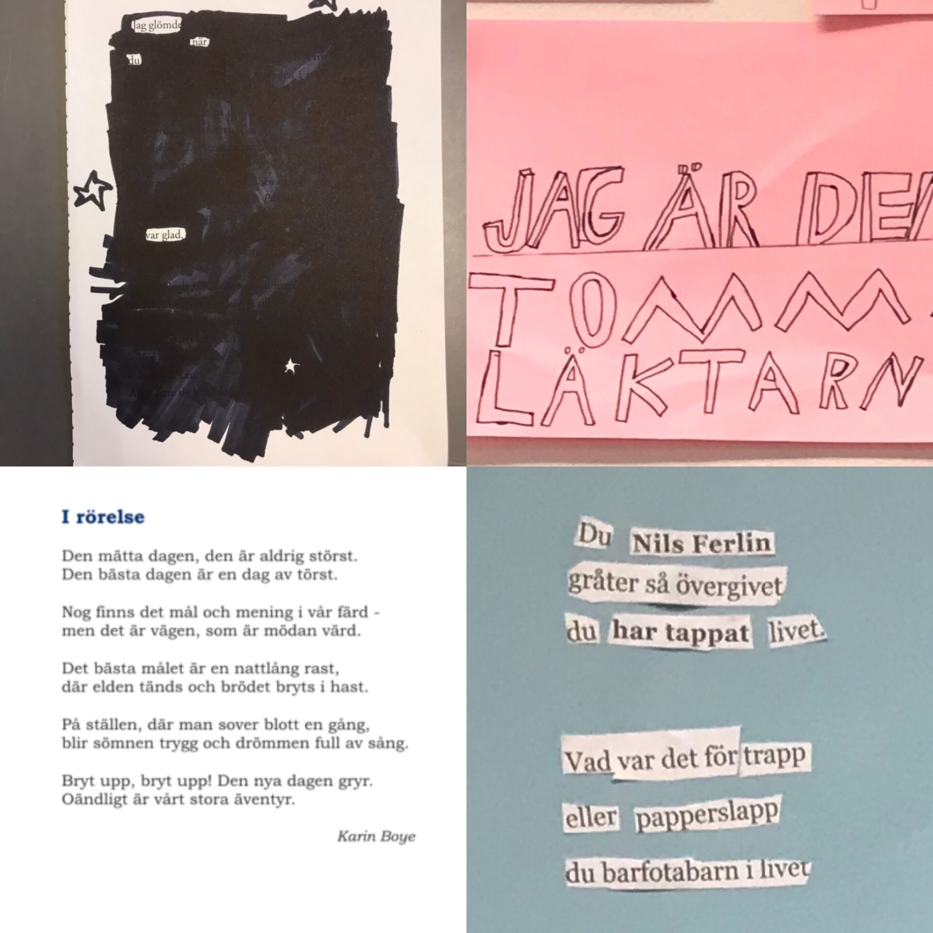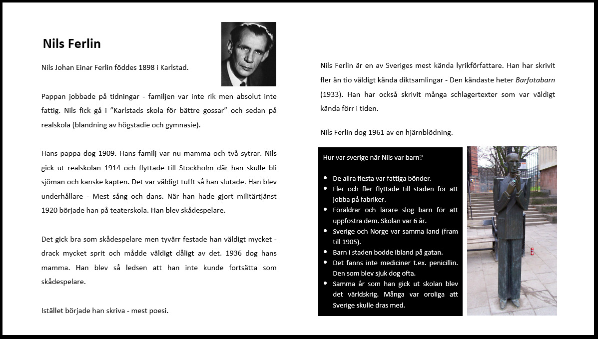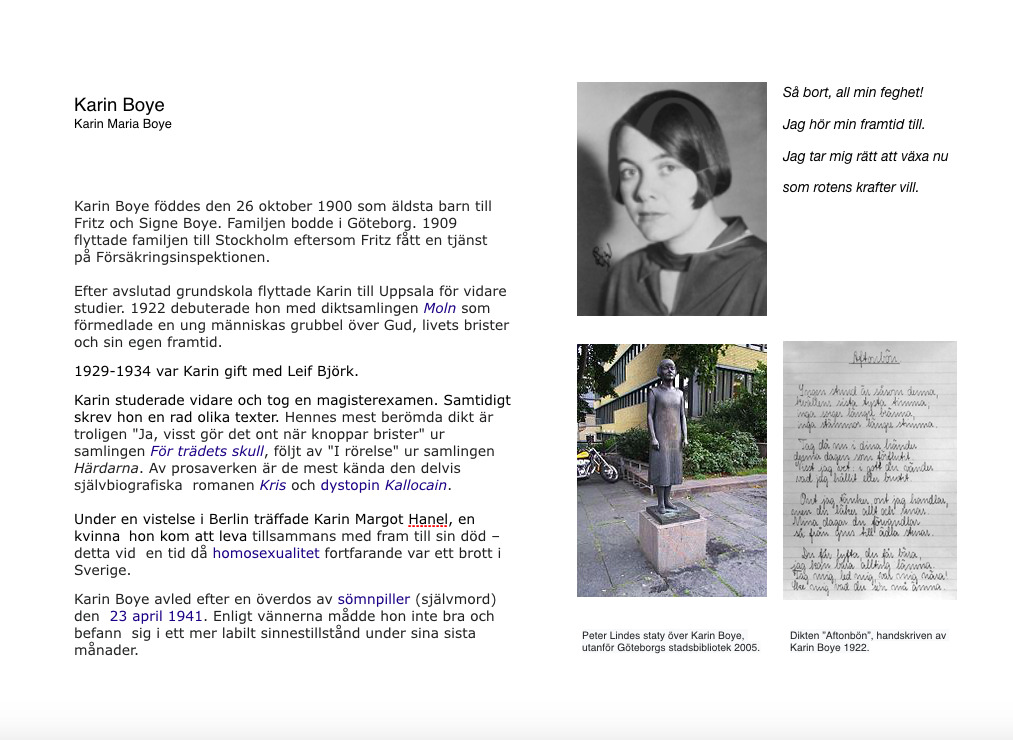 […] har lärt känna Nils Ferlin och Karin Boye genom att läsa om dem och deras liv och naturligtvis deras poetiska texter. Vi har […]