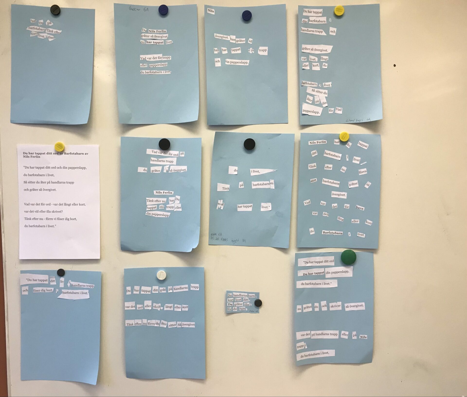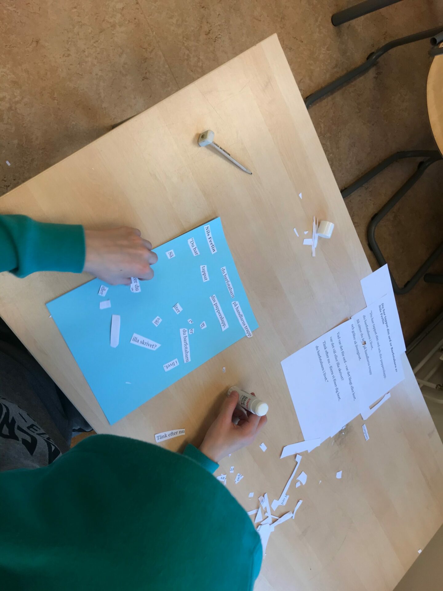 - Klipp Sönder din dikt i enstaka ord eller meningar.