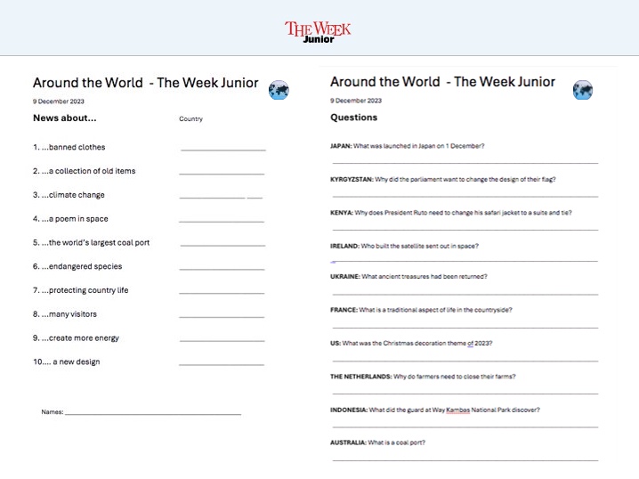 It’s time to read ”The Week Junior” – news from Around the World. Ten news each week from different countries. You will work in pairs and individually.