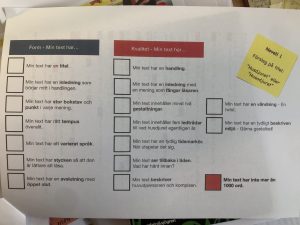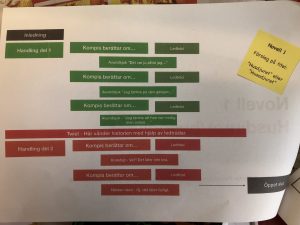 Klassen delades in i grupper och högläste olika noveller för varandra och analyserade texten med hjälp av ett antal frågor.